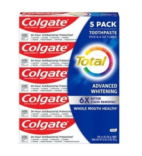 Colgate Total Advanced Whitening Toothpaste – 6.4 oz, 5-Pack